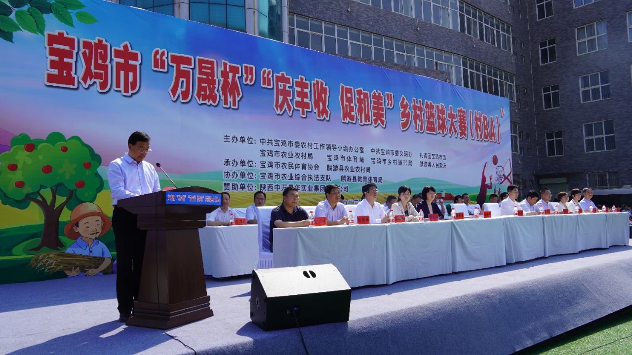 9月14日下午,宝鸡市“万晟杯”“庆丰收、促和美”乡村篮球大赛(村BA)决赛开幕式在麟游县举行。市委副书记段小龙讲话并宣布大赛开幕,市政府副秘书长陈焕文主持活动,市委农办主任、市农业农村局局长赵海斌通报赛事安排。