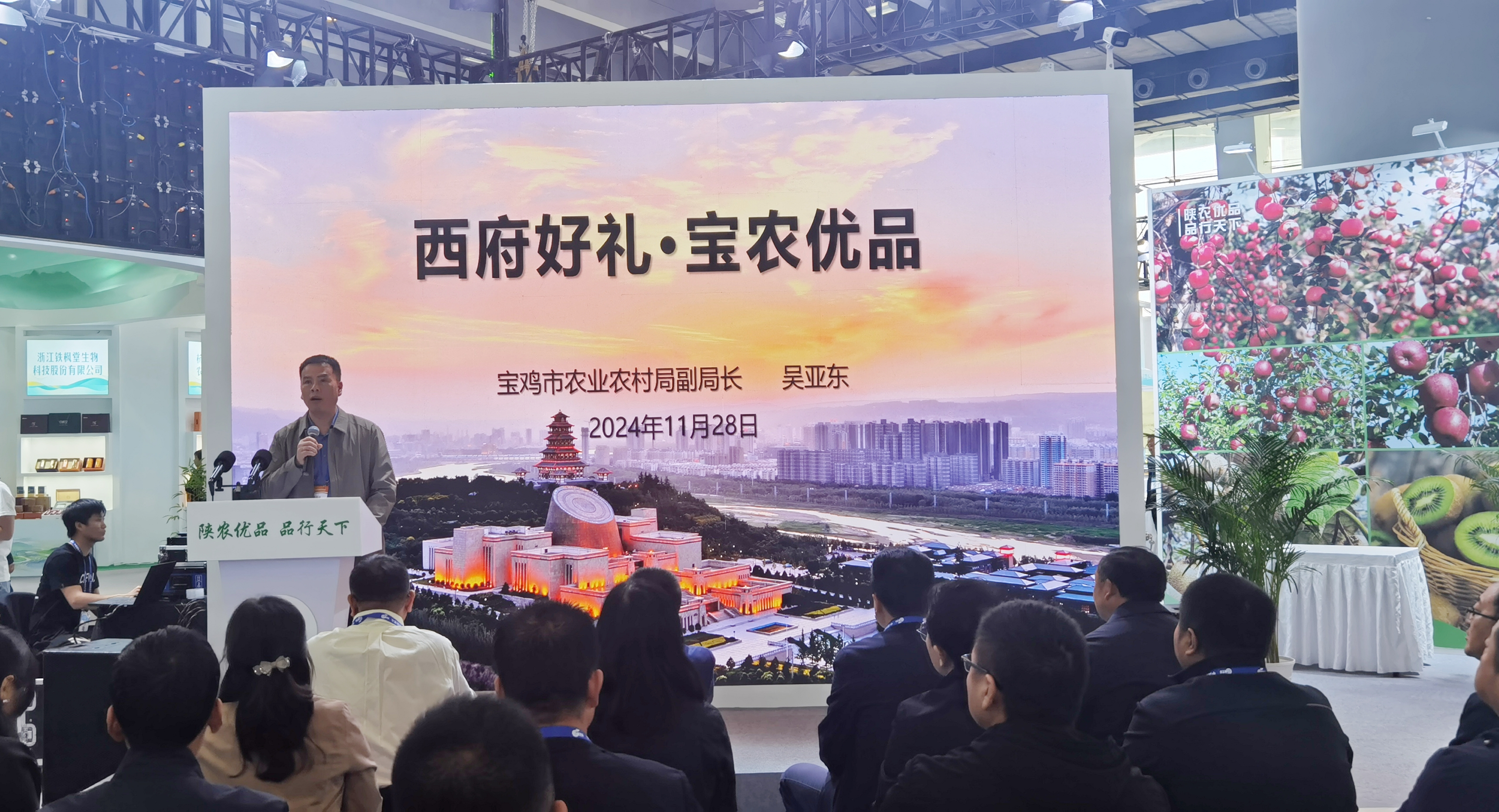 2024年11月28日-12月1日,第二十一届中国国际农产品交易会在广东省广州市举行,宝鸡名优农产品在会上进行展示展销,开展洽谈合作,收获颇丰。市人大常委会副主任宁怀彬、市农业农村局副局长吴亚东参加活动。