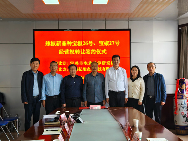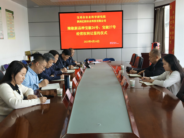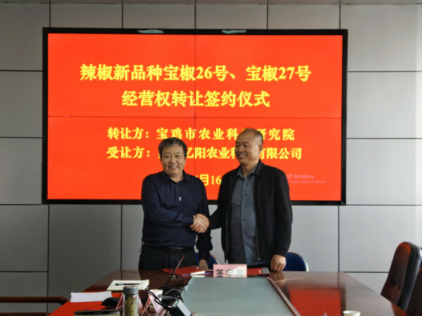 2025年4月16日,宝鸡市农业科学研究院与陕西亿阳农业科技有限公司就辣椒新品种“宝椒26号”、“宝椒27号”的经营权独占许可举行签约仪式。
