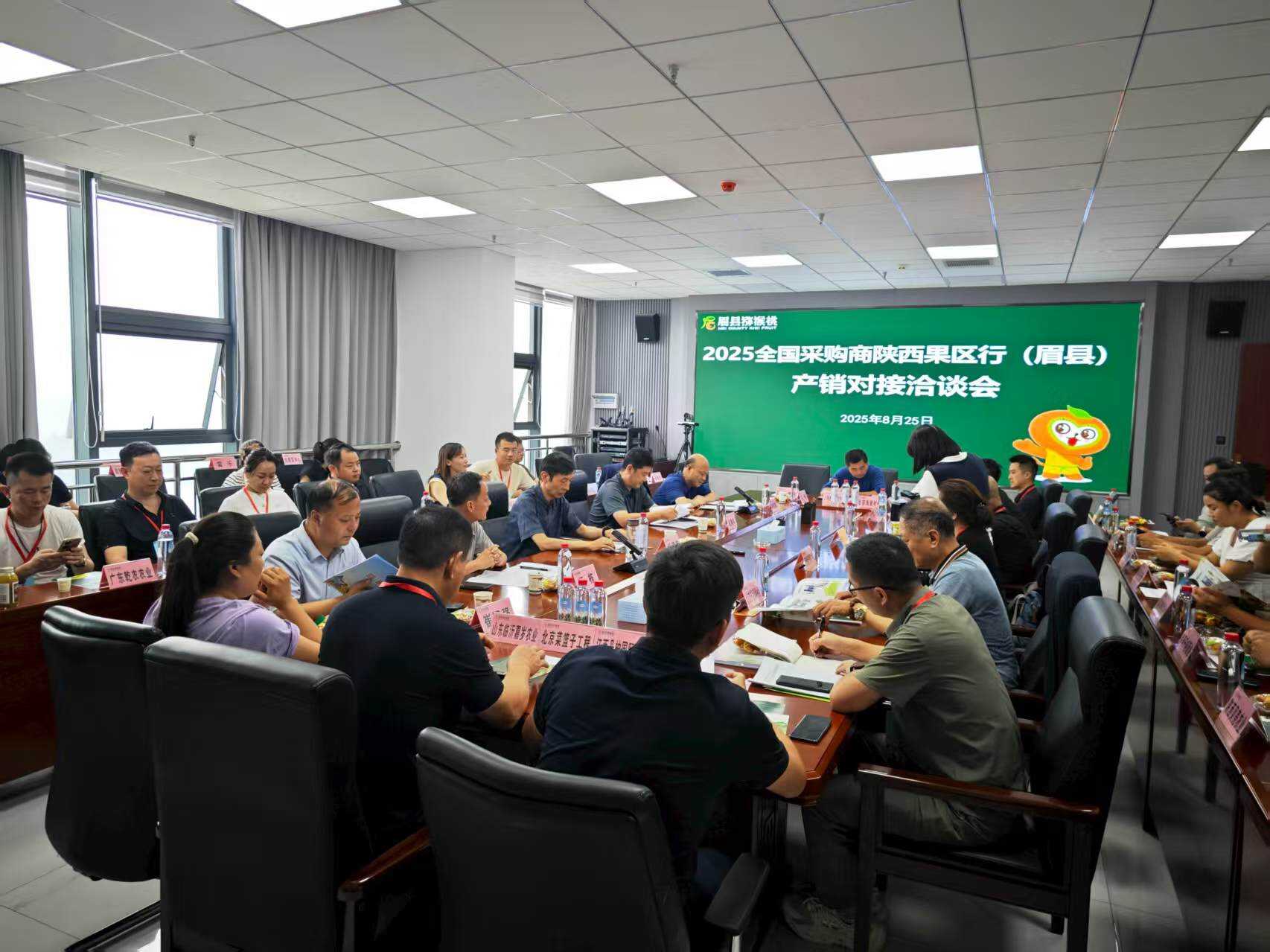 产销对接座谈会上,市果菜发展中心介绍了全市果业发展情况,眉县、凤翔区分别围绕猕猴桃和苹果做了推介;绿宝果业、雨嘉果业、齐峰果业、金桥果业等20多家供应链企业与阿里巴巴-淘天集团、江西丰广生物科技有限公司、鲜丰水果公司、亚洲经济贸易中心、深圳百果园实业有限公司等26家采购商就采收时间、品质安全、果品包装及合作模式进行一对一探讨交流,初步达成采购意向5个,采购果品1.6万吨。