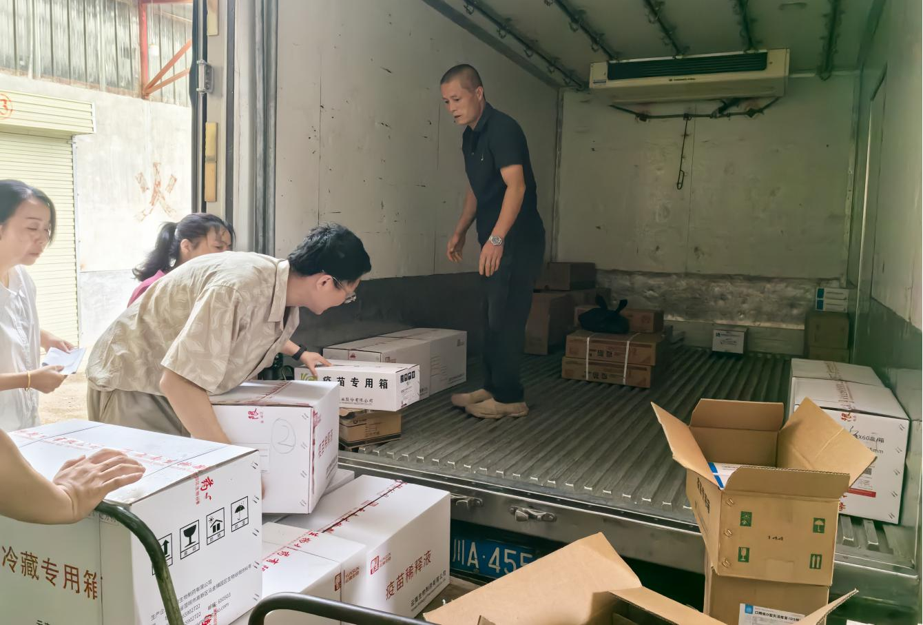 为确保秋防工作高效有序推进,市畜牧兽医中心提前谋划、周密部署,切实做好疫苗组织供应。一方面,根据各县区畜禽存栏、免疫程序、免疫剂量等数据,科学制定疫苗调运和分配计划,既保证各县区的疫苗需求,又有效避免疫苗积压浪费;另一方面,提前租赁专业冷库用于疫苗集中存储,同时积极协调专用冷链车辆配送,保障疫苗运输过程中的效力。此外,中心工作人员主动加班加点,高效完成疫苗清点、核对、发放等工作,确保319.23万毫升(头份)疫苗及时送达县区。