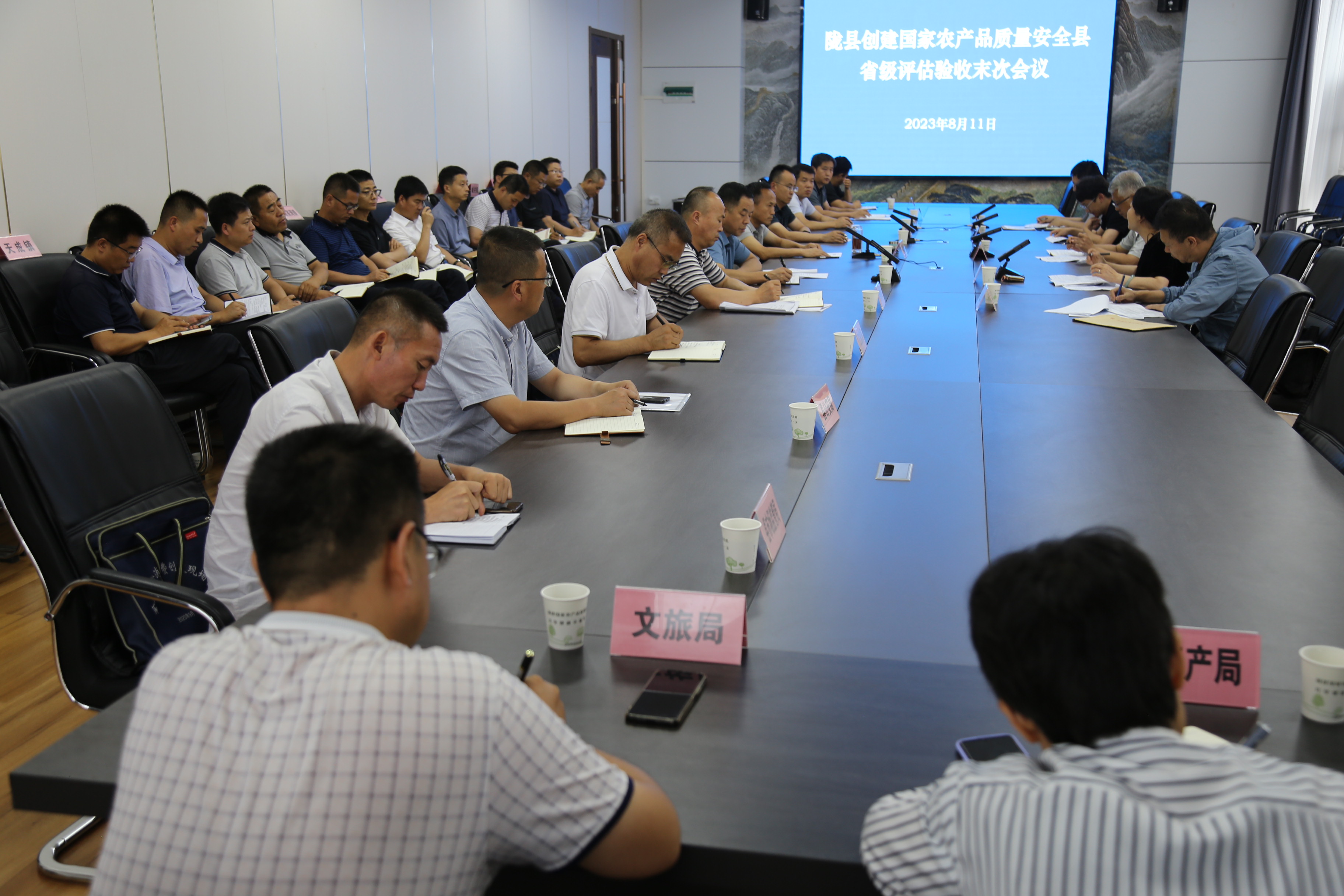 室内会上,梁新科汇报了国家农产品质量安全县创建工作开展情况,与会人员观看了我县创建国家级农产品质量安全县专题视频。