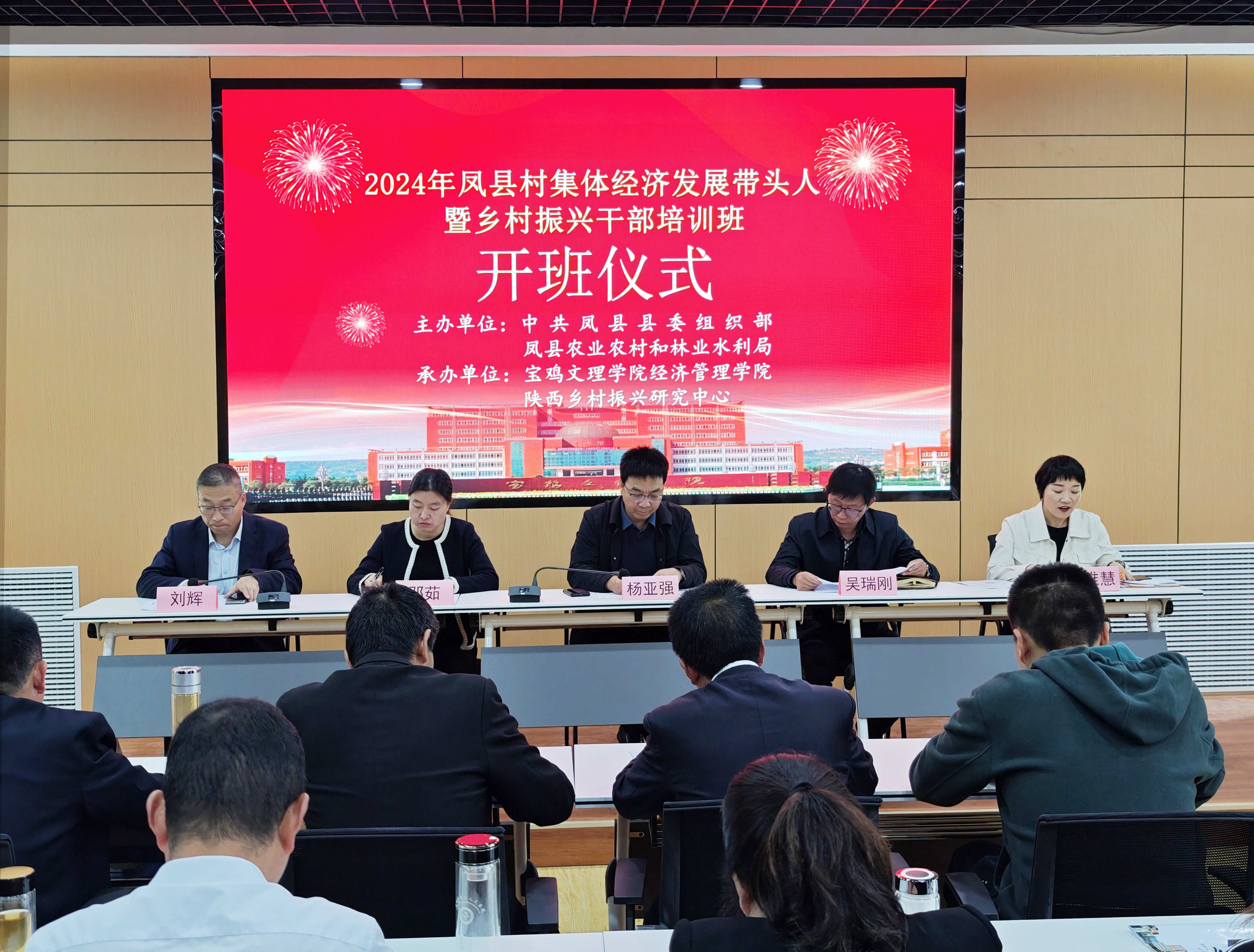 10月11日至13日,由中共凤县县委组织部、县农业农村和林业水利局主办,宝鸡文理学院经济管理学院、陕西乡村振兴研究中心共同承办的凤县2024年村集体经济发展带头人暨乡村振兴干部培训班在宝鸡文理学院隆重开班,来自全县66个村集体经济发展带头人、各镇分管乡村振兴领导、驻村工作队员共计200余参加培训。