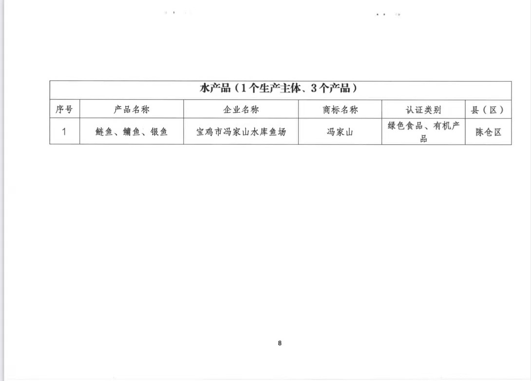 近期,宝鸡市2024年第一批“宝农优品”产品名单公布,我区冯家山水库鱼场的鲢鱼,鳙鱼、银鱼三个产品成功入选。