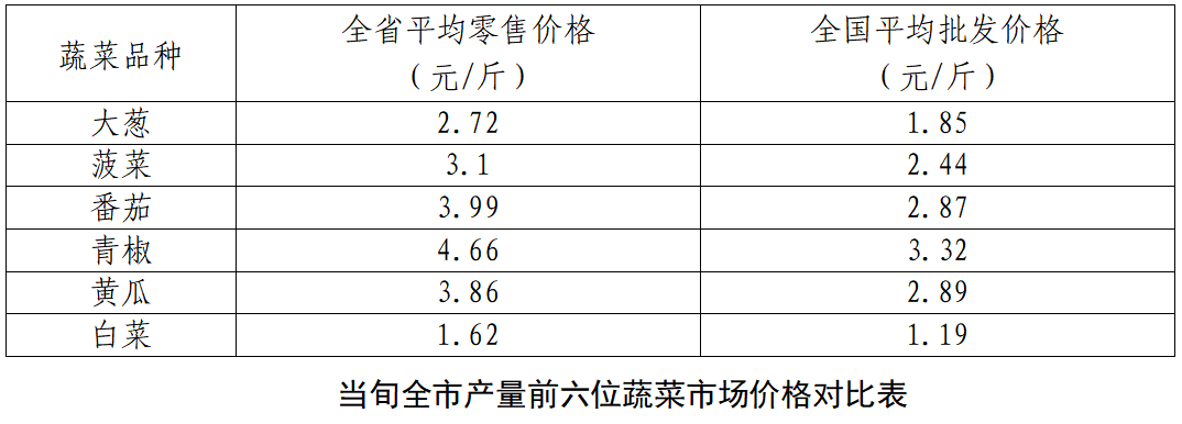 据农业农村部监测数据,当日我市主要蔬菜品种农批市场平均零售价格与全国平均批发价格对比如下: