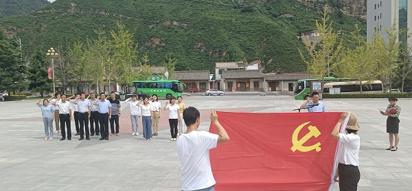 在凤县革命纪念馆宣誓墙前,全体党员干部举行庄严的宣誓仪式,重温入党誓词。随后,在讲解员的带领下,观看了红色影片《习仲勋在凤县》,参观了《序厅》、《习仲勋在凤县革命活动展》、《两当兵变主要领导人生平展》、《凤县革命历史陈列展》和《尾厅》等五个展厅。通过认真聆听讲解员的现场讲解,观看历史图片、实物及影像视频。大家接受了一次"红色"教育,重温了党卓越辉煌的奋斗历程。