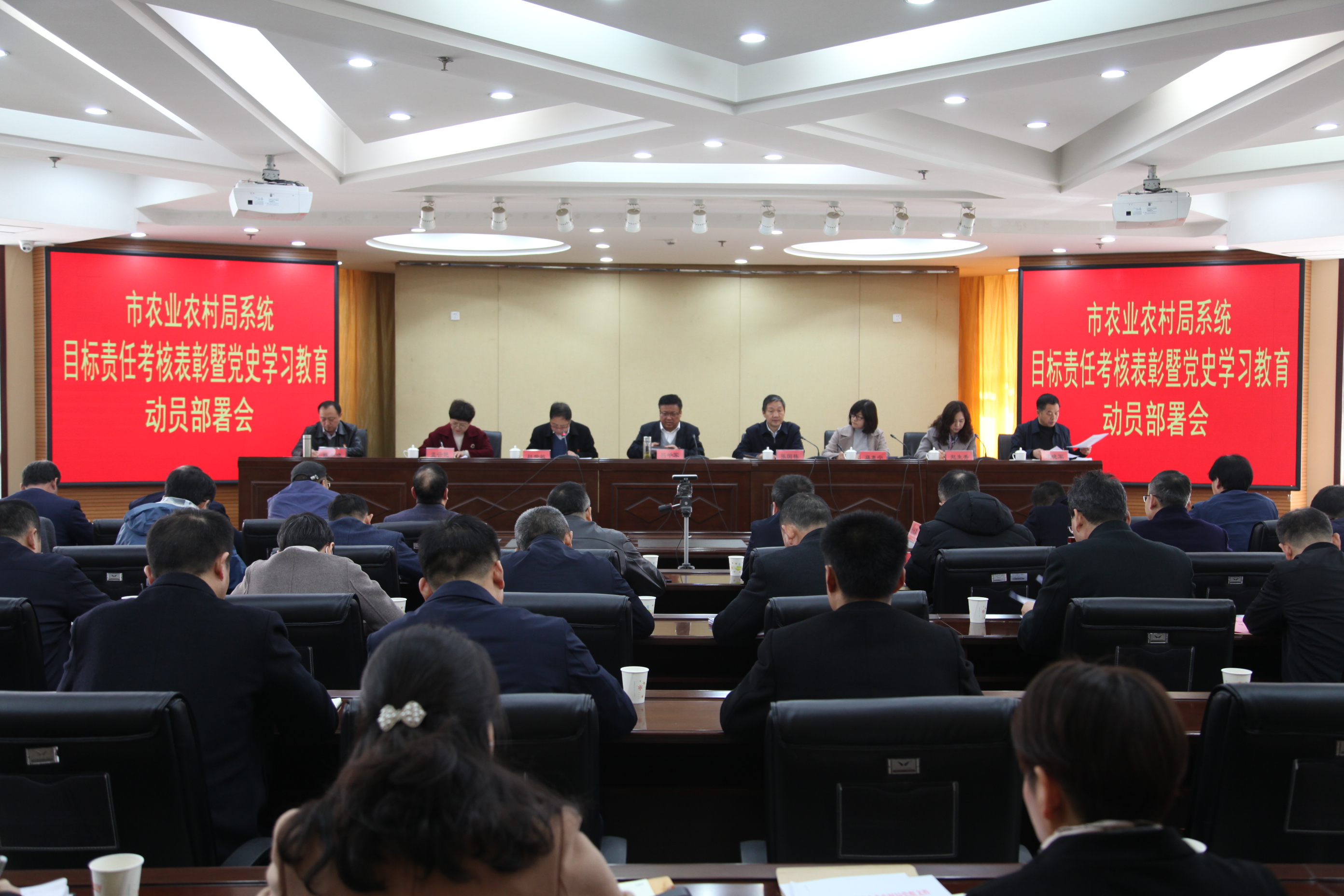3月22日,市农业农村局党组召开局系统目标责任考核表彰暨党史学习教育动员部署大会。局党组书记、局长吕千军作动员部署讲话。局机关全体干部、局属单位党政主要负责人在主会场参会,局属各单位设视频分会场,共计400余人参会。