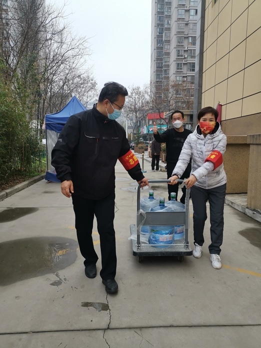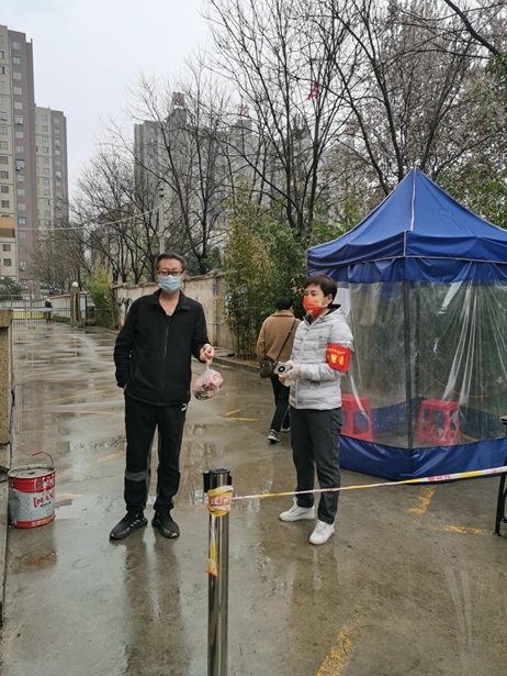 服务群众,不厌其烦。“请戴好口罩”“请保持一米距离”“不要逗留,早点回家”“把东西放这儿先消消毒”“今天核酸检测做了没有”“要勤洗手,不聚集”这些话语她每天都会一遍又一遍的唠叨,让大家时刻加强自身防护,才能更好的服务群众。她协助物业领用物资、核查信息,给住户送水送菜送快递,积极做好后勤保障各项工作。