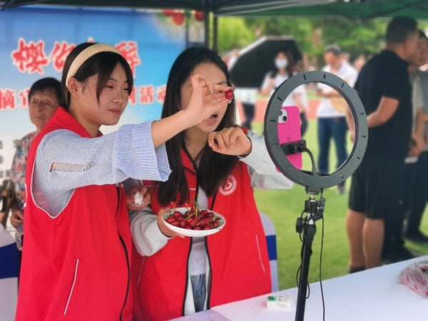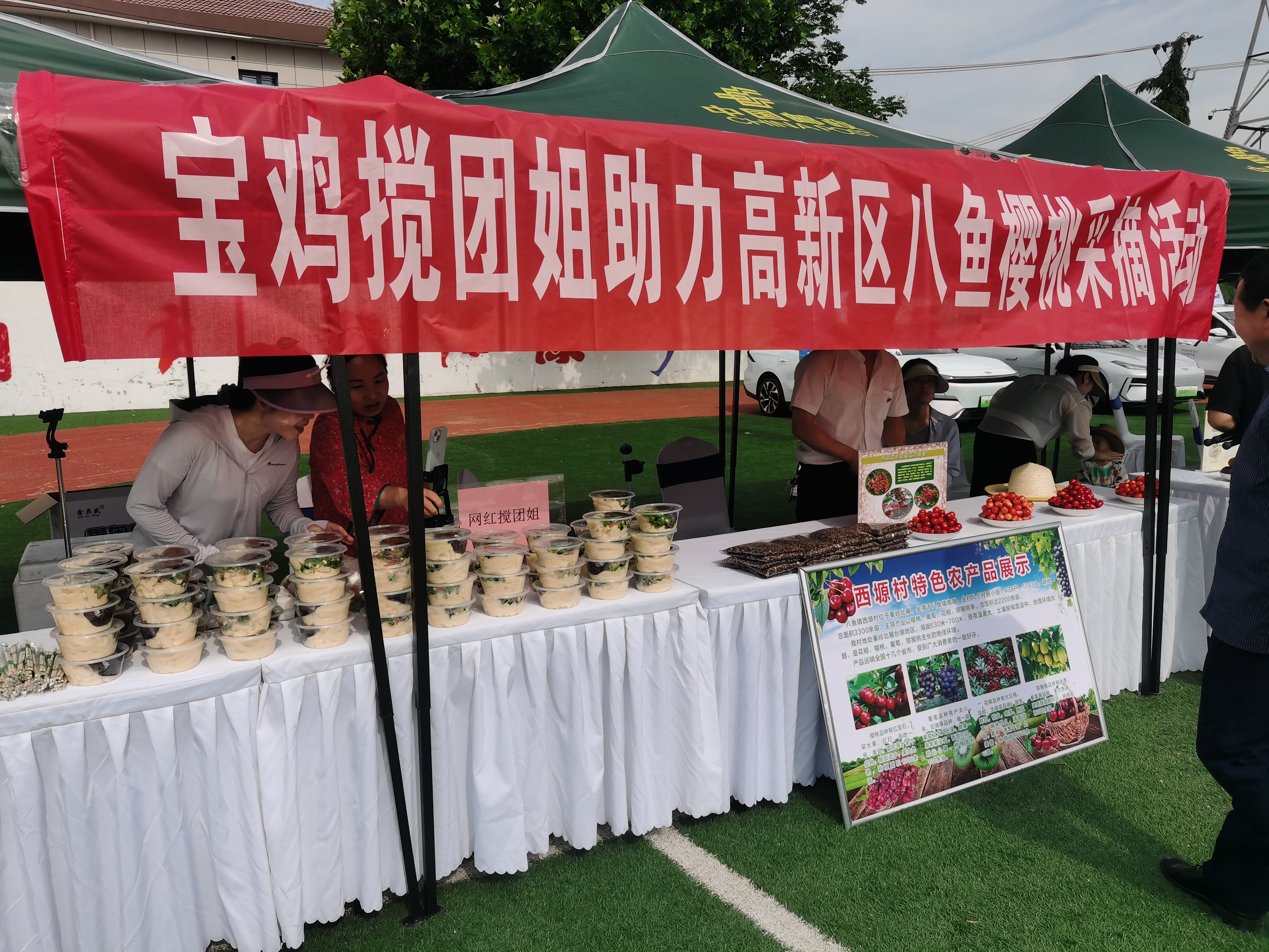 启动仪式现场,开展了高新区农特产品展示展销活动。网红达人“搅团姐”现场发放搅团供游人免费品尝,还邀请宝鸡职业技术学院学生、网红娜娜、搅团姐、秦女观光农业有限公司开展现场直播带货,网红在八鱼镇八鱼村樱桃示范园打卡宣传推介樱桃。同时,在市内10条公交线路车载视频、24条公交线路的车尾广告屏连续推送“秦岭红樱桃,宝鸡味道好”系列宣传短视频,开展助农促销活动。