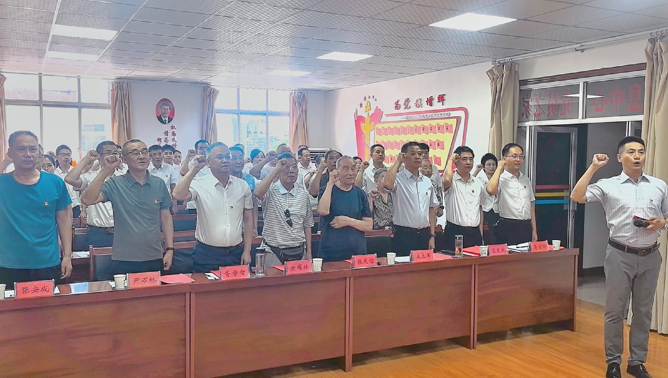铮铮誓言守初心。“我志愿加入中国共产党,拥护党的纲领,遵守党的章程,履行党员义务……”在鲜红的党旗前,大家紧握右拳、坚定执着,重温入党誓词,一句句铿锵有力的誓言震人心弦,让每个人的灵魂和党性经受洗礼,更加坚定、充满力量。