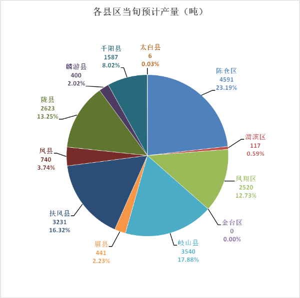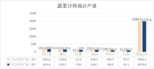 据宝鸡市园艺技术工作站提供的预测数据,预计当旬全市蔬菜在田面积27.28万亩,日均供应量约1979.6吨,与上年同期相比略有增长。主要集中在陈仓、岐山、扶风、陇县、凤翔等县区的蔬菜基地,预计当旬产量前六位的蔬菜依次为:西红柿、黄瓜、洋葱、辣椒、西葫芦、白菜。其中,设施蔬菜主产品种为西红柿(日均产量183.6吨,产地收购价格1.1-1.4元/斤)、黄瓜(日均产量149.5吨,产地收购价格0.6-1.0元/斤)、辣椒(日均产量120.7吨,产地收购价格1.0-1.5元/斤)、西葫芦(日均产量98.8吨,产地收购价格0.6-0.9元/斤);露地蔬菜主产品种为洋葱(日均产量130吨,产地收购价格0.6-0.7元/斤)、白菜(日均产量93.5吨,产地收购价格0.4元/斤)。