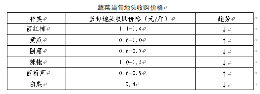 与5月中旬比,全市蔬菜种植面积继续增长,随着气温不断攀升,蔬菜生产周期缩短,产量增加,供应能力充足。我市菜价与5月中旬相比整体保持稳定,部分蔬菜价格下跌,但降幅不大。预计未来短期内,随着夏季的到来,部分蔬菜如黄瓜、西红柿等夏季作物的供应量将增加,价格会再下降。