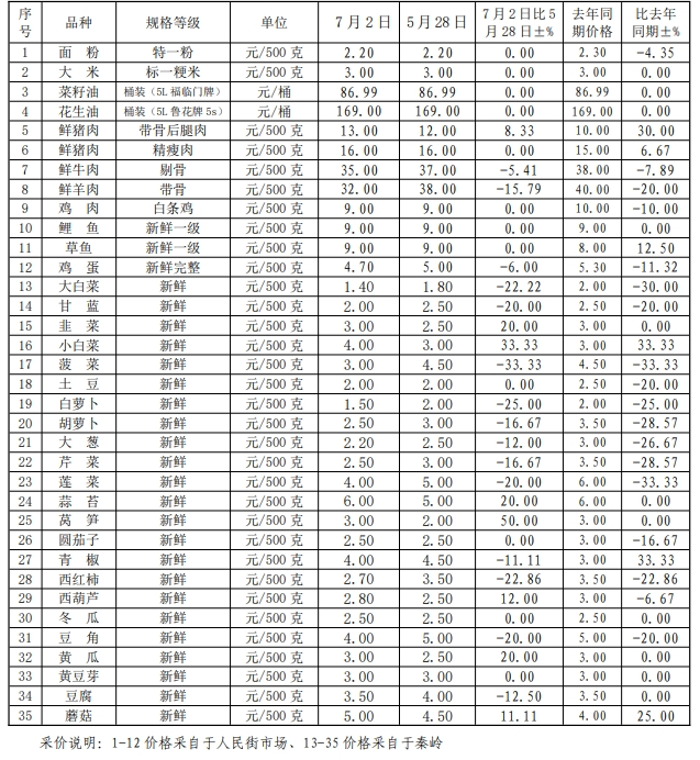 宝鸡市主要农产品价格(2024年7月2日)