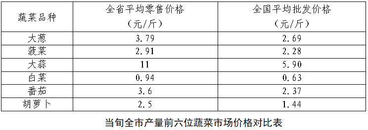 据农业农村部监测数据,当日我市主要蔬菜品种农批市场平均零售价格较全国平均批发价格略高。