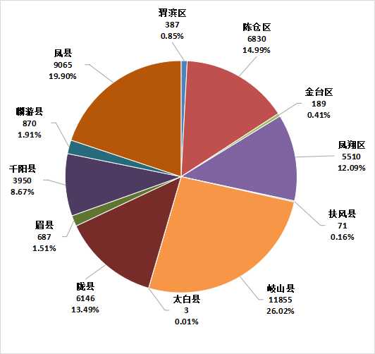 据市园艺站调查汇总数据,当旬全市蔬菜在田面积14.9万亩,同比增长54.98%,日均供应量约4556.3吨,同比增长3.31%。主要集中在岐山、凤县、陈仓、陇县等县区的蔬菜基地,产量占比如下: