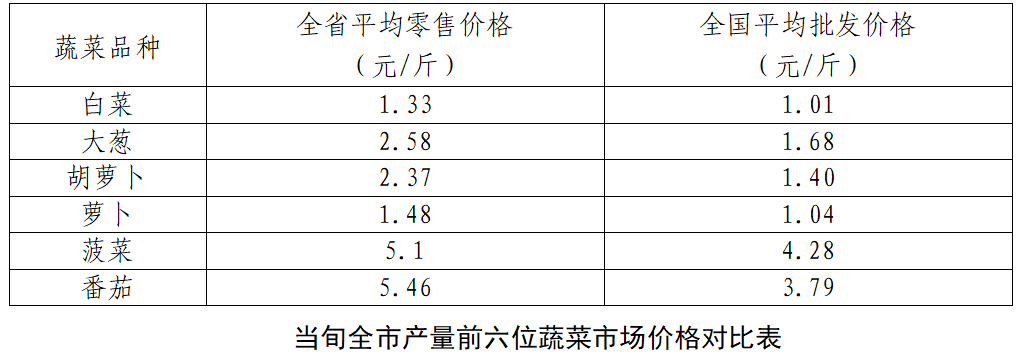 据农业农村部监测数据,当日我市主要蔬菜品种农批市场平均零售价格较全国平均批发价格略高。