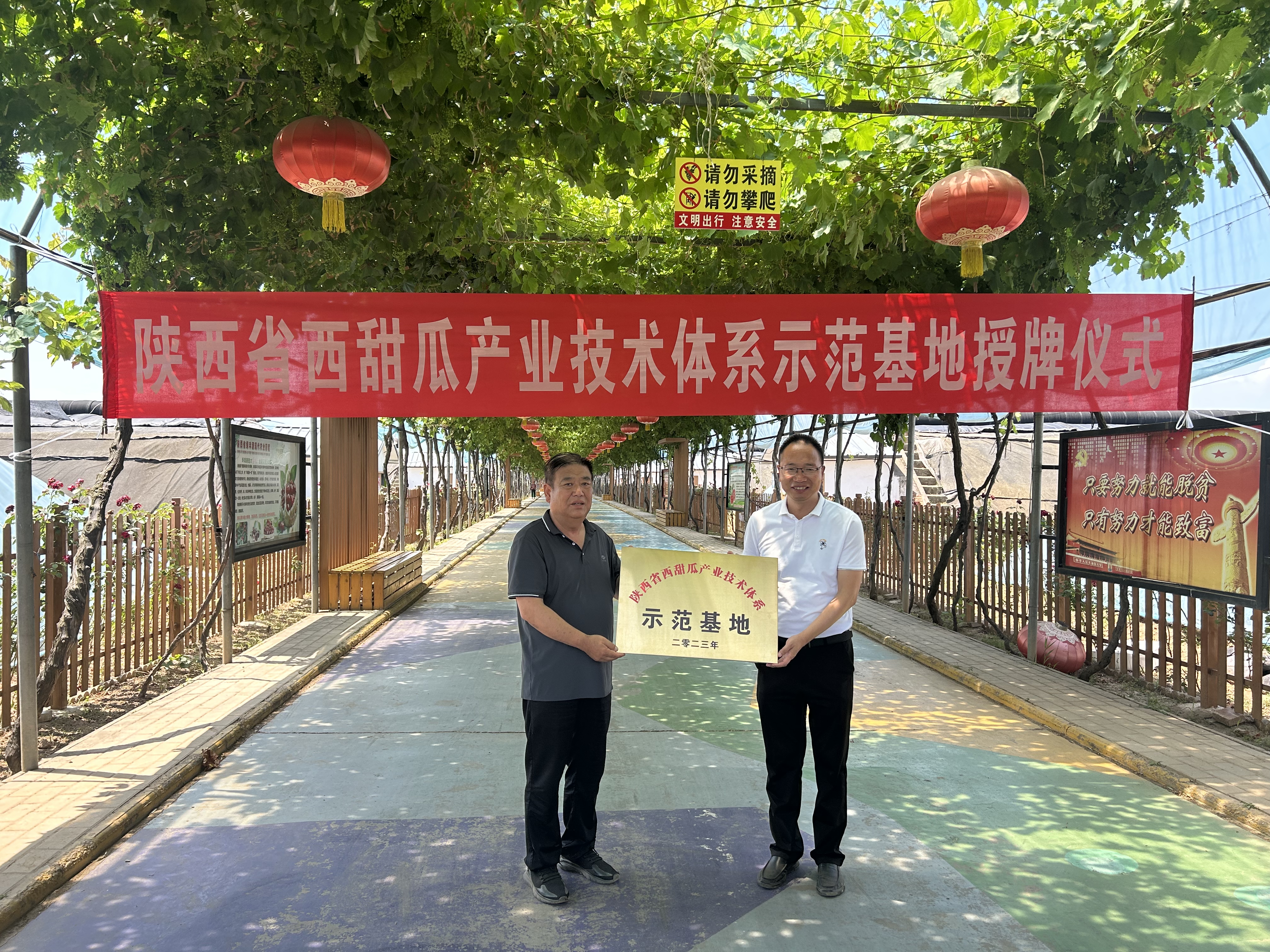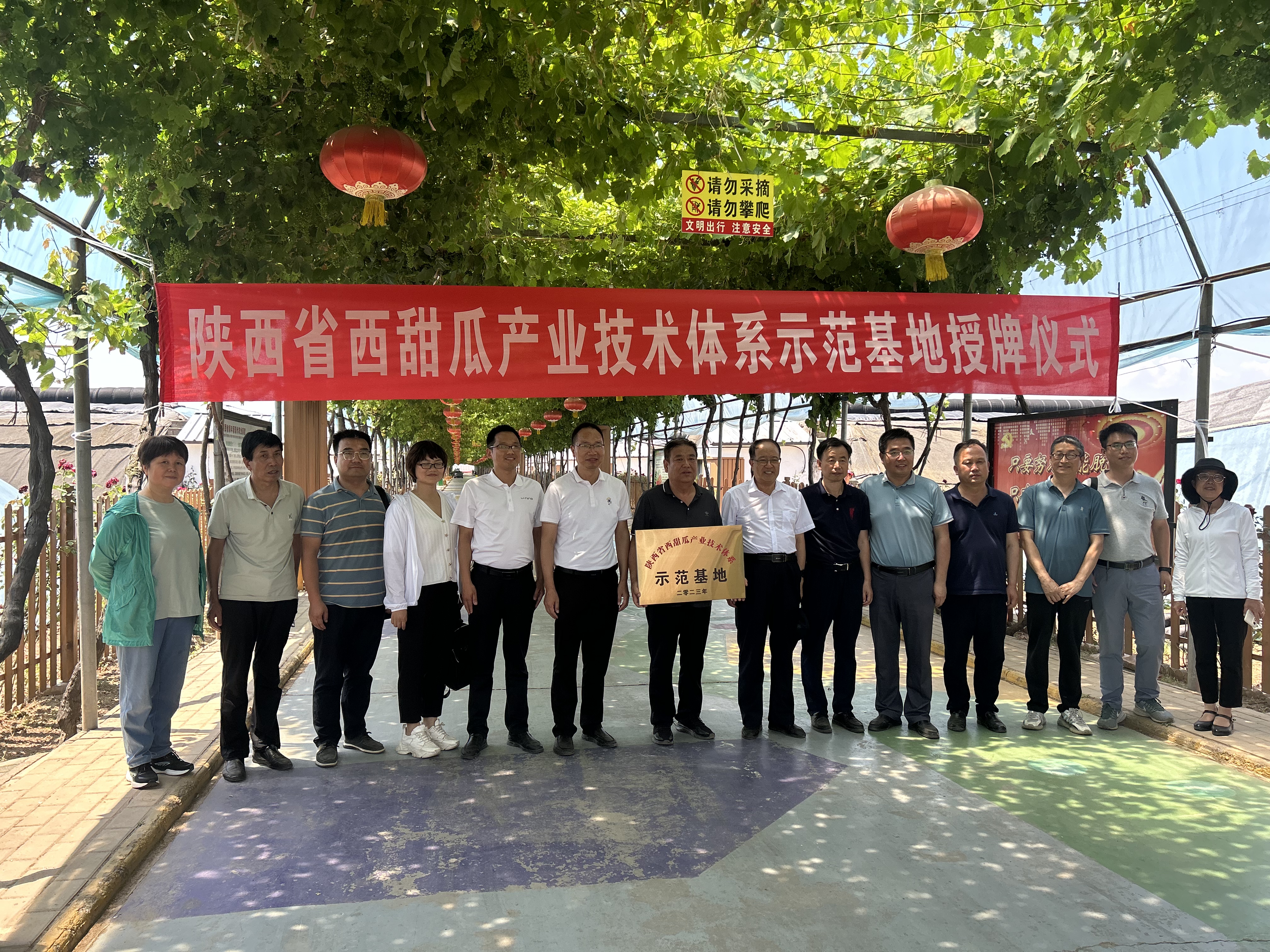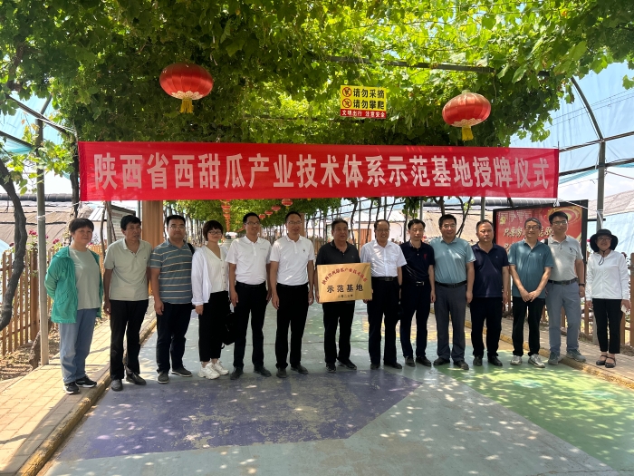 6月26日,陕西省西甜瓜产业技术体系首席专家马建祥、窦宏涛一行6人来我区为陕西省绿丰源现代农业园区西甜瓜示范基地授牌,市园艺站站长刘刚、区农技中心主任马虎鸣等参加了授牌仪式。