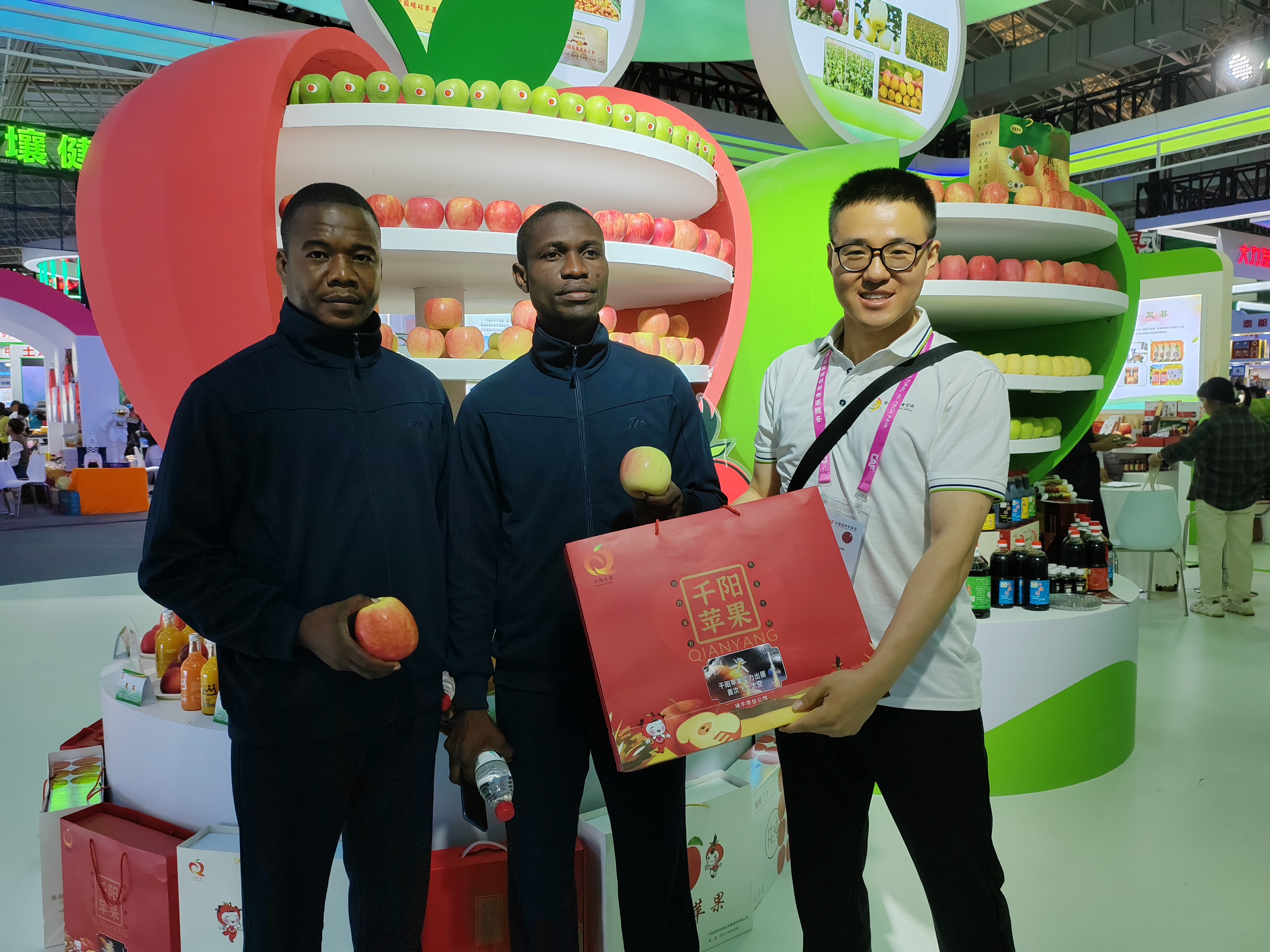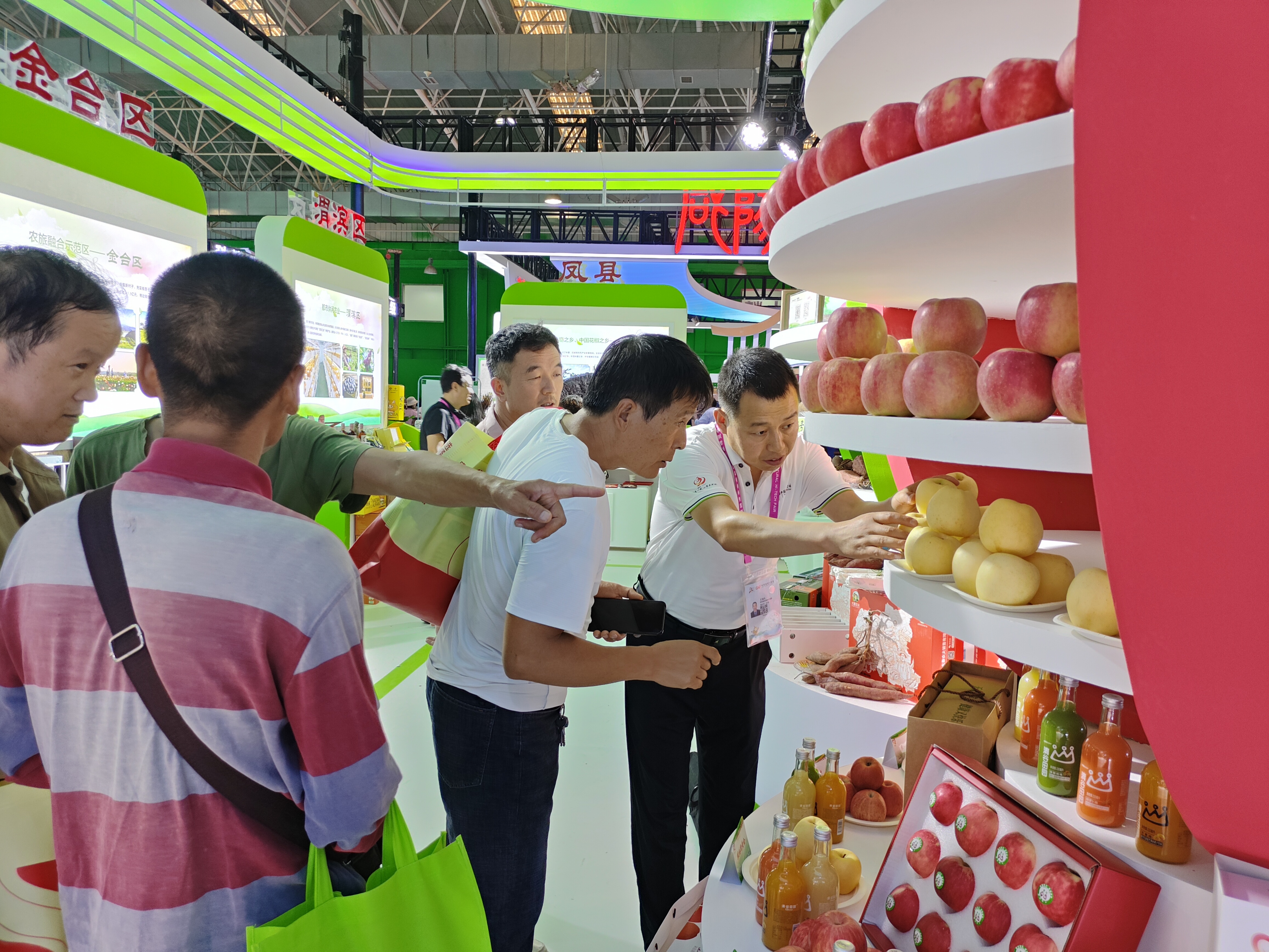四是现场交易洽谈成果丰硕。本届农高会上,展位累计接待来自上海、广州、云南、四川、河南等地客商15人,初步达成苹果购销意向5400吨。