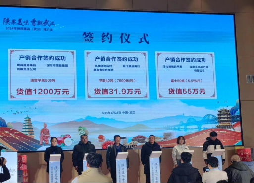 1月22-23日,由陕西省农业农村厅指导,陕西省果业中心主办,主题为“陕果美味香飘武汉”的2024年陕西果品(武汉)宣传推介活动在湖北省武汉市举办。凤翔区湫池庙果友专业合作社、汇根果业专业合作社参加了此次产销对接和宣传推介活动。