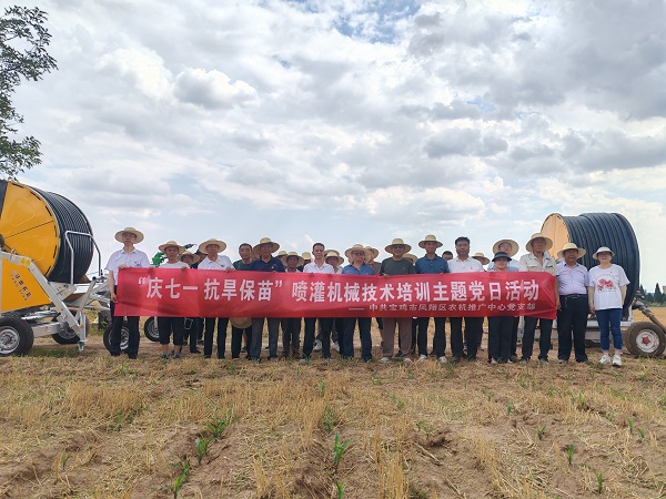 近期,高温天气持续,对夏播玉米、高粱等大田作物带来严峻挑战。为有效应对旱情,加快节水灌溉技术推广,7月1日,宝鸡市凤翔区农机技术推广服务中心党支部组织全体干部职工、种粮大户、农机大户、农机合作社成员、喷灌机械主体40余人,在城关镇大辛村田间开展“庆七一抗旱保苗”喷灌机械技术培训主题党日活动,隆重庆祝中国共产党成立103周年。