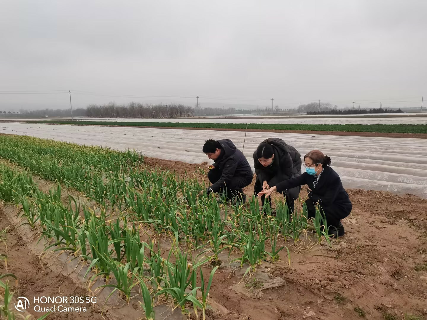 在阳平镇西枸、东枸等村露地蔬菜种植基地,农技人员详细查看了洋葱、莴笋、大蒜等蔬菜生长状况,针对当前蔬菜生长阶段可能出现的灾害性天气预防及春季水肥管理等关键问题,为种植户提供了专业性技术建议。